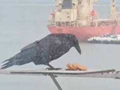 【さすがに無理だろ】 窓の外に6枚のクッキーが置いてあった。全部欲しい! → カラス、がんばります…