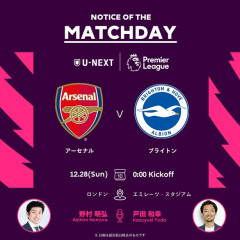 681: さあ名無しさん、ここは守りたい 2025/12/27(土) 23:43:40.03 ID:yqe7hgZ600:00~ アーセナル×ブライトンU-NEXT 解説:戸田和幸 実況:野村明弘…