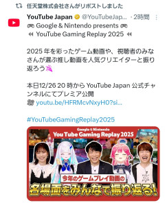任天堂「Vtuberと推し動画を振り返ろう!」YouTube Gaming Replay 2025 開催