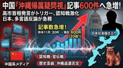 1: 名無し 2025/12/27(土) 20:35:12.45 ID:Inf0War99 中国系のメディアで沖縄県の歴史や帰属に言及した記事が11月、インターネット上で急増したことが判明しました。 「琉球」「独立」といった言葉を使った記事は前年同月比で約20倍に拡大しており、高市早苗首相の「台湾有事」を巡る国会答弁を受けた宣伝戦の可能性があります。 人民日報系の環球時報も、沖縄の帰属を疑問視する社説を掲載するなど、日本の領有権を揺さぶる動きを強めています。 産経新聞 ■要約 ・中国系メディアによる沖縄の帰属を疑問視する記事が昨年11月の30件から600件へ急増。 ・高市首相が台湾有事について発言した11月7日以降に記事数が激増している。 ・1972年の沖縄返還で主権が日本に戻っていないとする歴史歪曲の主張が目立つ。 ・自国世論を固めつつ日本社会を揺さぶる「認知戦・宣伝戦」の側面が強い。 ・専門家は日本も多言語を用いて国際社会へしっかりと反論すべきだと指摘。 ■解説 高市総理が台湾有事を「日本の存立危機事態」と明確に位置づけたことで、中国側が相当な焦りを感じていることがこの数字からも見て取れる。他国の領土権を平然と疑問視し、歴史を都合よく書き換えて宣伝戦を仕掛ける手法は、まさに共産党体制の常套手段と言えるだろう。 これまで沖縄をターゲットにした分断工作は水面下で行われてきたが、今回のように「20倍」という露骨な数字で表れたことは、彼らが「情報空間」を戦場として完全に認識している証拠だ。日本側も、こうした荒唐無稽な主張に対しては国際社会に向けて英語や中国語で事実を突きつけ、彼らの「ナラティブ」を即座に無効化する情報発信体制を強化しなければならない。 沖縄の主権は議論の余地なく日本にあり、これを揺さぶろうとする不当な工作には、高市政権が進める「経済安全保障」や「防衛力強化」と並行して、毅然とした対外情報発信で対抗していく必要がある局面だ。 【共同通信】高市首相、「核保有発言」処分せず 1週間経過、今後も慎重な姿勢 今年30歳で彼氏に振られたけど何か質問ある? 【動画】 中国のトンネルで大規模な火災が発生し39人が死傷か。公式情報は遮断。…