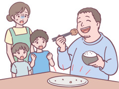 夫「ご飯と味噌汁と海苔と梅干しがあればいい」というくせに好きなおかずじゃないと露骨に嫌な顔をする夫。下の子も夫のクローン。夫「通だなw」→私が子供に注意すると…