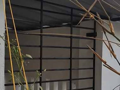 窓(?)にある防犯用の柵。 脱走するんだワン! ワンコさんはこんな感じ……