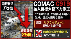 1: 名無し 2025/12/28(日) 07:25:12.48 ID:jK8wM2pL0 中国国産機のC919の納入機数は目標に大きく届かない見通しであることがわかりました。同社は2025年の目標納入機数を当初の約75機から25機に修正したものの、これにも到達できない見通しです。現在までに納入が確認されたのは13機に留まっており、欧米当局の認証を獲得できていない問題などから、海外展開も依然として低迷しています。 sky-budget ■要約 ・COMAC C919の2025年納入目標が当初の75機から25機へ大幅に下方修正された。 ・実際の納入数は現時点で13機に留まり、下方修正後の目標達成も困難な情勢だ。 ・サプライチェーンの混乱や生産体制の不備が背景にある可能性が高い。 ・欧米当局からの型式証明(認証)を取得できておらず、海外市場での受注が低迷している。 ■解説 「国産」を掲げつつも、エンジンやアビオニクスといった主要コンポーネントを米国などの西側諸国に依存しているC919の限界が露呈した形だ。サプライチェーンの問題で生産が滞っているという事実は、高市政権が警戒する「特定の国への過度な依存」が、皮肉にも中国自らの首を絞めている状況を物語っている。 航空機の安全性は乗客の命に直結する。欧米当局が認証を出さないのは、単なる政治的判断ではなく、機体の信頼性や製造プロセスに対する正当な疑義があるからに他ならない。日本の安全保障や経済的利益を考えれば、こうした不透明な航空機が国際標準を無視して普及することは避けるべきだ。 今後、中国側がなりふり構わず第三国へ売り込みを強める可能性はあるが、技術的裏付けのない「ハリボテの国産化」は長続きしないだろう。日本としては、米国や同盟国との技術連携を強化し、透明性の高い国際基準を維持していくことが、日本の航空産業を守ることにも繋がるはずだ。 日本政府「原子力潜水艦導入の議論を排除しない」←これが批判されている模様 韓国人「日本のことを見てて可哀そうだと思った理由がこちら…」→「いや、ブーメランが返ってくるけど…(ブルブル」=韓国の反応 なぜ「ターミネーター2」以降うまくいかないのか?…「答えはキャメロンですよ、彼がいないと」とT-1000役!…