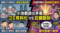 1: 名無し 2025/12/28(日) 09:15:33.42 ID:vN8pLr3K0 小池百合子東京都知事が23区での家庭ゴミ有料化の必要性を強調したことに対し、実業家のひろゆき氏が「お台場の噴水に26億円、プロジェクションマッピングに16億円使ったので、ゴミ収集は有料になります」と皮肉を投稿した。小池知事は多摩地域での先行事例を引き合いに、有料化が排出抑制に効果があるとして「行動変容を促したい」と述べているが、ネット上では「光の演出」への巨額投資と住民負担増の整合性を問う批判が相次いでいる。 中日新聞 ■要約 ・小池都知事が23区内の家庭ゴミ有料化を検討中。ゴミ削減に向けた「行動変容」が目的。 ・ひろゆき氏が、お台場の噴水(約26億円)やプロジェクションマッピング(総額24億円超)への支出を挙げ、都の姿勢を批判。 ・お台場の噴水は維持管理費だけで年間1.5~2億円が見込まれている。 ・都民からは「観光施策への散財と住民への負担増は矛盾している」との不満が噴出している。 ■解説 小池都政が進める「派手な演出」と、都民への直接的な「負担増」がセットで語られる現状には、強い違和感を覚えざるを得ない。環境保護という美名の下でゴミ有料化を正当化する前に、まずは26億円もの血税を投じる噴水や、巨額のプロジェクションマッピングといった、実利の見えにくいパフォーマンス予算を削るのが筋だろう。これでは都民が「納得感」を得られないのは当然と言える。 高市政権が国家の安全保障や経済的自立といった「実」を重んじる姿勢を示しているのに対し、小池都政のやり方はあまりに視覚的な人気取りに偏っているように映る。本来、行政が優先すべきは観光客向けの「光の演出」ではなく、都民の生活の質と負担のバランスだ。このような「パフォーマンス優先、ツケは住民へ」という体質が続くようであれば、都政への不信感はさらに深まるだろう。まずは行政自らが身を切り、予算の優先順位を「都民生活第一」に正すべき局面だ。 小池都知事、東京23区「家庭ごみ有料化」の必要※を説く「区民に行動変容を促していきたい!」 ← ネット「お台場噴水26億円、都庁3Dマッピング2... 【悲報】 あの竹じょうぎ、販売終了へ 敵前逃亡の兵士に与えられる罰がこちらですw【動画】…