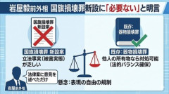 1: 名無し 2025/12/28(日) 20:07:46.12 ID:n7Rk2Qm0x 自民党の岩屋毅前外相が、中学生記者の川中だいじ氏によるインタビューの中で、保守層から待望論の強い「国旗損壊罪」について言及した。 岩屋氏は、国内で日の丸が損壊される事案が日常的に起きていないことを理由に「立法事実がない」と主張。既存の器物損壊罪などで法的にはカバーされているとの認識を示し、新設は国民の精神や行為をいたずらに圧迫する懸念があるとして、否定的な考えを改めて強調した。 NEWSポストセブン ■要約 ・岩屋毅前外相が、国旗損壊罪の新設について「必要ない」と明言。 ・法律を作る前提となる「具体的な被害実態(立法事実)」が乏しいと指摘。 ・他人の所有物を壊せば既存の器物損壊罪で対処可能であり、法的バランスは保たれていると分析。 ・表現の自由の観点から、国が罰則を設けて規制することへの危惧を表明。 ・かつて高市首相の提案に反対した経緯についても「法律案に意見を述べただけ」と説明。 ■解説 岩屋前外相は「立法事実がない」と冷静さを装っているが、近年の政治活動における日の丸への侮辱的行為や、中韓など近隣諸国による反日プロパガンダに日本国内の勢力が呼応している現状を軽視しすぎているのではないか。 世界を見渡せば、主権国家として自国の国旗を守る法律を整備している国は少なくない。それを日本だけが「表現の自由」という曖昧な言葉で放置し続けることは、国家としての尊厳を自ら放棄しているに等しい。 高市首相がこの件を「唯一の恨み」とまで表現したのは、単なる法律論ではなく、日本人のアイデンティティと主権を守り抜くという強い覚悟の表れだろう。器物損壊罪はあくまで「財産権」を守るものであり、国旗という「国家の象徴」を冒涜する行為を防ぐ機能は持っていない。 特定勢力による挑発行為がエスカレートしてからでは遅い。高市政権が目指す「自立した日本」のためには、こうした根幹部分での法整備こそが、他国からの不当な揺さぶりを防ぐ強力な抑止力になるはずだ。 小池都知事、東京23区「家庭ごみ有料化」の必要※を説く「区民に行動変容を促していきたい!」 ← ネット「お台場噴水26億円、都庁3Dマッピング2... 【悲報】 あの竹じょうぎ、販売終了へ 敵前逃亡の兵士に与えられる罰がこちらですw【動画】…