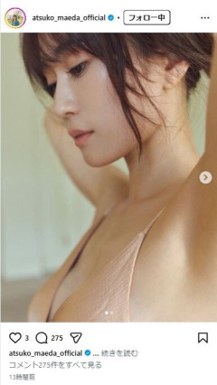 前田敦子34歳、美肌大胆露出! 刺激的な手ブラショットに「いいのこれ?」「攻めてて良い!」