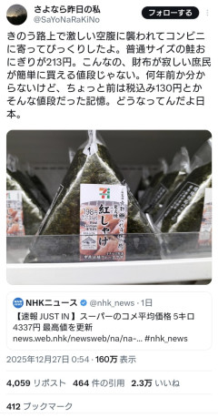 引用元: それでも動く名無し 2025/12/28(日) 02:44:23.40 ID:INhJIPmB0 やばいやろ 2: それでも動く名無し 2025/12/28(日) 02:45:23.02 ID:Rx7NHLzUd 同じように給料も上がってるなら良いけどそこは据え置き、むしろ税金でマイナスなのが 3: それでも動く名無し 2025/12/28(日) 02:46:04.91 ID:RNDhk9WJ0 もう慣れちまったよ…
