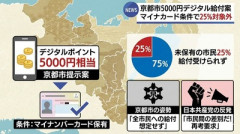 1: 名無し 2025/12/28(日) 22:58:12.45 ID:k9WvP1mR0 京都市は物価高対策として、全市民を対象に1人5000円のデジタル地域ポイントを給付する補正予算案を提案した。しかし、受取にはマイナンバーカードとスマートフォンの紐付けが必須とされ、カードを持たない市民約35万人(約25%)が対象外となることが判明。市側が「全市民を対象にする必要はない」と答弁したことに対し、共産党は「市民を差別するものだ」として再検討を求めている。 京都民報 ■要約 ・京都市が1人5000円のデジタルポイント給付案を提示。 ・マイナンバーカード保有が条件のため、未保有の市民25%が給付を受けられない見通し。 ・京都市は「全市民への給付を想定していない」との姿勢を崩していない。 ・日本共産党は「市民間の差別」であると強く反発し、制度の再考を要求している。 ■解説 行政のデジタル化を推進し、事務コストを削減するためには、マイナンバーカードを基軸とした給付システムの構築は避けて通れない課題だ。 高市政権が掲げる「デジタルによる国家の強靭化」の観点からも、カード保有者にメリットを付与して普及を促す手法は、現代の行政運営として極めて合理的と言える。 反対勢力は「差別」という言葉を多用するが、利便性の高いインフラを整備しようとする努力を阻害し続けることこそ、将来的な市民サービスの低下を招く「真の不利益」ではないか。 特にマイナンバー制度は、税や社会保障の公平性を担保し、不正受給を防ぐための重要な基盤だ。中韓などの外国勢力によるなりすましや不正利用を防ぐセキュリティの観点からも、早期の完全普及が望まれる。 京都市の「全市民を対象にする必要はない」という答弁は一見突き放したように聞こえるが、制度を普及させるためのインセンティブ設計としては現実的な判断だ。 既存の非効率な紙ベースの事務に固執し、デジタル化の足を引っ張るような反対運動は、結果として行政の停滞を招くだけである。 小池都知事、東京23区「家庭ごみ有料化」の必要※を説く「区民に行動変容を促していきたい!」 ← ネット「お台場噴水26億円、都庁3Dマッピング2... 【悲報】 あの竹じょうぎ、販売終了へ 敵前逃亡の兵士に与えられる罰がこちらですw【動画】…