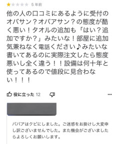 Googleクチコミ「受付のオバサンの態度が最悪でした」店「ババアはクビにしました!」