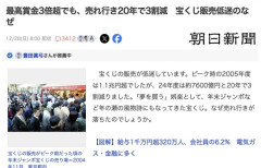 1 : 宝くじの販売が低迷しています。ピーク時の2005年度は1.1兆円超でしたが、24年度は約7600億円と20年で3割減りました。「夢を買う」娯楽として、年末ジャンボなど年の瀬の風物詩にもなってきた宝くじ。なぜ売れ行きが落ちたのでしょうか。 宝くじを販売しているのは、全国の都道府県や政令指定都市。実際の事務はみずほ銀行が担い、売り場事業者への再委託などで売られる。販売の低迷について、都道府県などでつくる協議会は「明確な理由は分析できていない」(事務局の東京都庁公債課)という。 商品の魅力を高めようと取り組んできたのが、最高当選金の引き上げ。販売ピーク時の05年度は1等・前後賞で計3億円だったが、その後に6億→7億→10億円と増やした。ただ、売り上げは一時的によくなっても続かない。 続きは↓ 2 : 当たらないから…