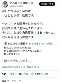 【正論】蓮舫「一人で生きる選択をした女性が貧困や孤独に追い込まれる。これはもう自己責任ではない」