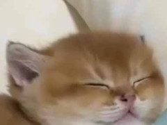 ベッドで寝ている子猫ちゃん。 むにゃむにゃ…まだ飲むのにゃ~ 酒好きの毛玉オヤジはこんな感じ……