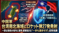 1: 名無し 2025/12/31(水) 11:58:12.45 ID:vX9zP1kR0 台湾の国防部は30日、中国軍が台湾海峡の対岸から多連装ロケット弾計27発を台湾北方と南西の海域に向けて発射したと発表した。南西の海域では台湾の接続水域内に着弾したという。 また、30日朝までの24時間に中国の軍用機延べ130機が活動し、うち90機が中間線を越えた。いずれも今年最多の規模で、軍艦14隻と海警局の船14隻も確認されている。 台湾の頼清徳総統は「軍事的威嚇により地域の安定を破壊している」として最も厳しい非難を表明した。 産経新聞 ■要約 ・中国軍が台湾南北の海域にロケット弾27発を発射。 ・一部は台湾の接続水域内に着弾し、威嚇を強めている。 ・軍用機130機、艦船28隻という今年最大規模の軍事活動を展開。 ・軍艦11隻が接続水域内に進入するなど、行動がエスカレート。 ・頼清徳総統は非難しつつも、冷静に対応し譲歩しない姿勢を強調。 ■解説 年末の押し迫った時期に、今年最大規模の軍事圧力をかけてくる中国の姿勢には、なりふり構わぬ覇権主義的な意図が透けて見える。特にロケット弾を接続水域内に着弾させたことは、これまでの「演習」の枠を超えた極めて危険な挑発行為と言わざるを得ない。 こうした動きは単に台湾への威嚇にとどまらず、地政学的に繋がっている日本の先島諸島や安全保障体制全体に対する重大な挑戦だ。中国側は「ハイマース」などの防衛装備強化を警戒しているようだが、そもそも周辺国にこれほどの軍事的脅威を与え続けているのはどちらなのか、国際社会はもっと厳しく問い直すべきだろう。 高市政権が掲げる「抑止力の抜本的強化」がいかに正当であり、急務であるかが改めて浮き彫りになった形だ。力による現状変更を試みる勢力に対し、日本は米国や台湾との連携をさらに深め、曖昧さを排した毅然とした態度で臨まなければならない。ここで弱腰を見せれば、中国の暴走をさらに助長させるだけだ。 【朗報】いよいよ来月から南鳥島沖でレアアースの試掘はじまる → 松本文科相「この任務を担うのが文部科学省所管の国立研究開発法人JAMSTECです... 【速報】 トランプ大統領、「台湾保証実施法」に署名 米共和党「中国共産党による地域支配の試みに、われわれが断固として立ち向かう」と表明 【ガチ動画】 好きな女の子がDQNに居酒屋のトイレに連れてかれた… ⇒ やっぱりこうなってた・・・…