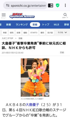 【懐古】12年前AKB48大島優子が紅白歌合戦で卒業発表した時どんな感じだった?