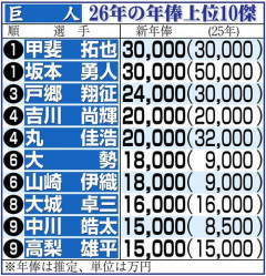 大正義巨人軍、日本人選手の年俸が全員中野拓夢以下wwwwww
