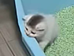 小さな子猫がトイレに入っていた。上手にできるかな? → 先輩猫たちはこうなります…