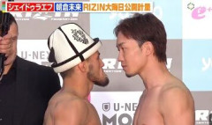 路上の伝説朝倉 未来KADOKAWA2020-12-24強者の流儀 (角川文庫)朝倉 未来KADOKAWA2022-03-231: 以下、名無しで筋肉速報がお送りします 2025/12/30(火) 16:33:01.60 ID:KA9PqVvS9 格闘技イベント「Yogibo presents RIZIN師走の超強者祭り」(31日・さいたまスーパーアリーナ)の前日公開計量が30日、都内で行われた。メインカードのフェザー級タイトルマッチで激突する、挑戦者・朝倉未来(33=JAPAN TOP TEAM)は66.0キロ、王者・ラジャブアリ・シェイドゥラエフ(25=キルギス)は65.95キロで共にリミット66.0キロをクリア。悲願のタイトル獲得を目指す朝倉は、「ド派手にKOする」とマイクし、闘志をむき出しにした。 決戦に向け全ての準備が整った。この日、六本木ヒルズアリーナで行われた公開計量は一般に無料開放。10周年のメインを飾る両者の登場に、会場からは大歓声が起きた。 先に計量台に乗ったのは朝倉だった。バキバキに引き締まったボディーを披露し、無事にパス。拳を作ってファンの声援に応えた。シェイドゥラエフも、王者の風格を漂わせる肉体でクリアし、天に向かって人差し指を突き上げた。 両者はその後、カード発表会見、調印式に続き3度目のフェイスオフ。互いに至近距離まで接近し、約20秒間火花を散らせた。前日の会見で朝倉を「裏切り者」と語っていたシェイドゥラエフは、朝倉の目をじっと見つめていた。 朝倉は「明日、ラスト俺がド派手にKOして2025年締めくくりたいと思います」とマイクし、悲願のベルト獲得へ覚悟を示した。シェイドゥラエフは「こんにちは、東京。明日はスーパーアリーナでお会いしましょう」と日本語を交えながらコメントした。 この日の計量には、かつて存在した格闘技イベント「PRIDE」を支えた、ミルコ・クロコップとアントニオ・ホドリゴ・ノゲイラが立ち会い人を務めた。過去2回挑んだタイトル戦はいずれも敗北している朝倉。戦績15戦15勝無敗の怪物相手にアップセットを起こし、大みそかの聖地・さいたまスーパーアリーナに伝説を刻みに行く。 ENCOUNT編集部 12/30(火) 16:28配信 ENCOUNT 悲願のベルト獲得へ3度目の挑戦 前日計量に参加したシェイドゥラエフ(左)と朝倉未来【写真:ENCOUNT編集部】…