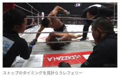 1: 冬月記者 ★ 2026/01/01(木) 02:16:45.61 ID:/6eqKOAv9 「ストップ遅すぎる」「止めてあげて」朝倉未来、衝撃結末にファン悲痛 「人間の種類が違うみたい」ケンコバ驚き 「パウンド連打、重たい一発。恐怖の拳が朝倉未未来に襲い掛かっていく」“路上の伝説”が一方的に殴られる修羅場に実況席から悲鳴のような声。 ファンからも「止めてあげて」「もはやホラーゲーム」など悲痛な声が相次いだ。 2025年12月31日、さいたまスーパーアリーナで「RIZIN 師走の超強者祭り」が開催され、メインイベントのRIZINフェザー級タイトルマッチで王者ラジャブアリ・シェイドゥラエフが1ラウンド2分54秒、パウンドの連打で朝倉未来をTKOで下し、防衛に成功した。 キルギス出身のシェイドゥラエフは16勝0敗、フィニッシュ率100%。挑戦者の朝倉にとってはキャリア過去最強の相手として“圧倒的不利”の下馬評で挑む異例のカードとなった。 余りにも強すぎる王者だ。試合序盤こそシェイドゥラエフのプレッシャーに、左ハイで反応を見せた朝倉だが、ロープ際のリフトからのパウンド、素早くバックからスープレックス2連発と規格外の怪力とテクニックを前に、ファンは「無理無理」「バケモン」「パワーどうなってんだ」「プロレスかよ」「遊ばれてるやん」と唖然。 スープレックス後もフックを解除せず、コーナーへと引き込んだシェイドゥラエフは、顔面にヒザ。 串刺し状態から硬いパンチ連打で朝倉を削り、マウントやハーフガード、亀の状態の朝倉に対し、後頭部を避けつつ容赦ない拳を叩き込み続ける。 ほぼ無抵抗の状態。バックからの鋼鉄のような拳の連打に「動け!」の声援も飛ぶが、徐々に「もう止めて」「これは無理だ」「強すぎる」など、絶望の声が相次ぐ。 レフェリーは朝倉の反応を見ながら試合の状況を注視。怒涛のパウンド攻撃に、かすかに朝倉がガードするような動きを見せるが、力が抜けた状態だ。 一方的な状況に「パウンド、このパウンドは重い! パウンド連打、パウンド連打、重たい一発。様々な角度から恐怖の拳だ!」と悲鳴のような実況。 ファンも「止めるのおせえよ」「ストップ遅すぎる」「もはやホラーゲーム」と阿鼻叫喚のなか、レフェリーがようやく身体を入れてストップ。 意識はかすかにあるものの朝倉は仰向けで天を仰ぎ、即ストレッチャーが投入され搬送された。 試合前に「さすがにバケモノだとは思いますけど、俺なら勝てると思ってるんで」と覚悟を語った朝倉だったが、シェイドゥラエフの“バケモノ”レベルは朝倉本人の想定を遥かに上回るものだった。 ファンからは「人外すぎる」「もう誰も勝てない」「この化け物と試合をしただけ勇気があるわ」「これだけの差があったか…」と諦めムード。この日のゲスト解説ケンドー・コバヤシは「俺はもう中央アジアが怖いです。人間の種類が違うみたいな気がして…」と、目の前で起きた絶望を吐露した。 大会側によると、朝倉は意識こそあるもののダメージは大きく、救急車で緊急搬送され、予定されていた試合後会見は欠席。精密検査を受けているということだ。…