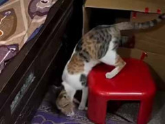 子猫のために 段ボールハウスを作った飼い主さん。 ここじゃにゃい。 母猫さんはこんな感じ……