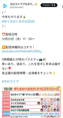 【画像】みんなは年越しのホロライブほどのパートを見るの!?😊引用:hololive ホロライブ - VTuber Group チャンネル登録者数 290万人-Vtuberタグ-ホロライブ RSSホロライブ さくらみこ 兎田ぺこら 宝鐘マリン 戌神ころね 星街すいせい 白上フブキ今日のNEW(0゚・∀・)+ ワクテカ +1: 名無しの時事ネタ 2025/12/31(水) 17:24:59.865 ID:IGO8Ui/A0 うおおおおおおおおおおおおおおおおおおおおおおお🤣🤣🤣…
