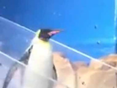 1匹のペンギンがプールの前にやってきた。カッコいいとこ見せてやるか♪ → こうなる…