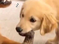 【ガルルゥ】 子犬が骨を噛んでいた。それは私のだよ → 子犬、先輩犬から社会性を学びます…