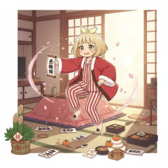 お絵描きAIくん、あわてんぼうの寝正月の可愛い女の子も作れる