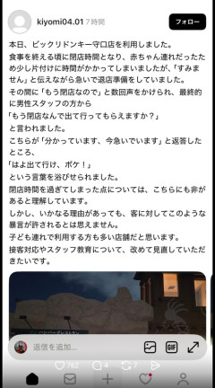 【悲報】女さん「びっくりドンキーに赤ちゃん連れで閉店時間過ぎても居座ったら暴言吐かれた!」
