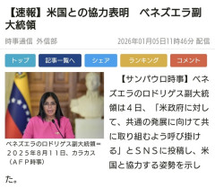 1:2026/01/05(月) 12:20:27.26 ID:sxo06k5g0ベネズエラ副大統領、米国との協力表明 均衡の取れた関係訴えデルシー・ロドリゲス - Wikipedia転載元スレッド:…