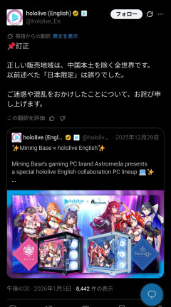 引用元: 726: Vtuberまとめ (ワッチョイW f767-0B15) 2026/01/05(月) 16:29:54.71 ID:0jNo9PO2 732: Vtuberまとめ (ワッチョイW 578e-vfX0) 2026/01/05(月) 16:30:25.12 ID:vQPq957A >>726 😂😂😂 737: Vtuberまとめ (ワッチョイW 34f9-rX3Y) 2026/01/05(月) 16:30:39.56 ID:I56Hvzyd >>726 煽りかな? 743: Vtuberまとめ (ワッチョイW a6f9-SdyK) 2026/01/05(月) 16:31:25.62 ID:OyjMYKo1 >>726 中国バイバイ 744: Vtuberまとめ (ワッチョイ c69d-xsxN) 2026/01/05(月) 16:31:46.48 ID:Ez5YgnHN >>726 これ大丈夫?台湾で販売してたりしない? 746: Vtuberまとめ (ワッチョイW 958f-by9e) 2026/01/05(月) 16:31:57.95 ID:RwFDtL5V >>726 父さんお前船降りろ 749: Vtuberまとめ (ワッチョイW 1e43-VP2b) 2026/01/05(月) 16:32:06.85 ID:5miSYD7y >>726 草 750: Vtuberまとめ (ワッチョイW d6a2-XkGQ) 2026/01/05(月) 16:32:07.44 ID:oLJf6dW1 >>726 中国は世界ではなかった 752: Vtuberまとめ (ワッチョイ c065-NCSa) 2026/01/05(月) 16:32:24.60 ID:gcu4Uxx4 >>744 中国本土という表記なのでセーフ 758: Vtuberまとめ (ワッチョイW c03d-8Jcr) 2026/01/05(月) 16:33:00.53 ID:7t54YBhH >>726 草 762: Vtuberまとめ (ワッチョイ c69d-xsxN) 2026/01/05(月) 16:33:10.60 ID:Ez5YgnHN >>752 ほんまや ならセーフか😙 794: Vtuberまとめ (ワッチョイW 95b6-gywO) 2026/01/05(月) 16:35:05.00 ID:aaz6w3JZ >>726 よかった北朝鮮とベネズエラでも買えるんや 801: Vtuberまとめ (ワッチョイ 83e5-MCom) 2026/01/05(月) 16:35:52.49 ID:5zp6bBcE >>726 昨日おかゆのところに変な中国人が荒らしに来てたよな…? 809: Vtuberまとめ (ワッチョイW 6d9d-oq3C) 2026/01/05(月) 16:36:20.05 ID:h3ndB0kQ >>726 あーあーシナ激怒やでこれ 979: Vtuberまとめ (ワッチョイW 83e5-DIrY) 2026/01/05(月) 16:51:52.25 ID:WbRsAUWt >>726 いや草…