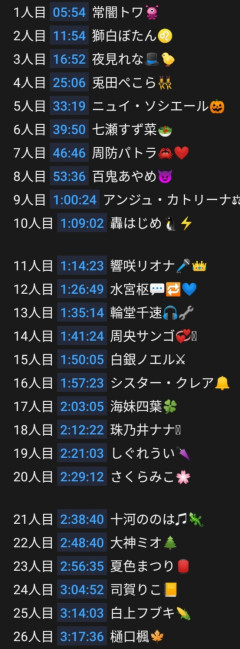 引用元: 2308: Vtuberまとめ (ワッチョイW c065-jIIL) 2026/01/06(火) 00:20:20.52 ID:Dp04c3ih さっきのスバル&サロメ凸待ちに来た26人 2329: Vtuberまとめ (ワッチョイW 39f9-aUIa) 2026/01/06(火) 00:21:04.87 ID:1qsk3nJO >>2308 あんだけ有象無象いてなんか名前見たことあるなって人しか来ないのがにじさんじの限界だよな 2353: Vtuberまとめ (ワッチョイW f865-Q2Ow) 2026/01/06(火) 00:22:04.33 ID:Fh4kA9UU >>2308 余さん来たんか 2361: Vtuberまとめ (ワッチョイW c69d-syB1) 2026/01/06(火) 00:22:16.63 ID:4fG1OzOS >>2329 そもそもサロメと仲がいい新人がいないんじゃないの 2582: Vtuberまとめ (ワッチョイW 577f-y2ps) 2026/01/06(火) 00:30:40.04 ID:HUGYX94n >>2308 まとめ助かる 2784: Vtuberまとめ (ワッチョイ d19d-CdcC) 2026/01/06(火) 00:40:48.38 ID:CQlR6QYv >>2308 3人ほどガチで名前もわからんやつがいるわ 2838: Vtuberまとめ (ワッチョイW a65f-Kn8L) 2026/01/06(火) 00:42:54.28 ID:94U8s46k >>2308 案の定というかみこちやらミオしゃもいたのね てか最初の方で間違えられたすうちゃんの友達も来てたんか。あれから見てられんかった 2851: Vtuberまとめ (ワッチョイ d55b-qJW2) 2026/01/06(火) 00:43:09.07 ID:qAV3cRsz >>2308 ぺこみこどっちも来たのか…