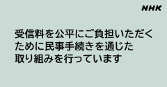 引用元: それでも動く名無し 2026/01/06(火) 00:26:17.32 ID:Tku4ITLX0 受信料を公平にご負担いただくために裁判所を通じた法的手続きを行っています NHKでは、文書・電話・訪問等により、受信料制度の意義や公共放送の役割を丁寧にご説明したうえで それでもなお、ご契約やお支払いいただけない場合の最後の方法として、裁判所を通じた法的手続きを行っています。 放送法では、NHKの放送を受信することのできる受信設備を設置された方や NHKの配信の受信を開始された方には、受信契約を締結しなければならない旨が定められています。 また、総務大臣の認可を受けた日本放送協会受信規約では、「受信契約者は、受信料を支払わなければならない」旨が定められています。 3: それでも動く名無し 2026/01/06(火) 00:27:48.00 ID:ce6gJxSH0 😎お客さんさぁ払わねえなら出るとこ出ような? 5: それでも動く名無し 2026/01/06(火) 00:28:05.43 ID:9sQs8SsCp 年1.2万払うだけで何も来なくなるサブスクやぞ…
