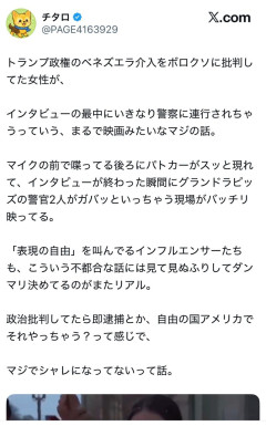 【動画】インタビューでトランプのベネズエラ介入を批判した米国人女性、インタビュー中に逮捕される