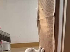 子ネコが「爪とぎ」にしがみついていた。とっても眠いようだ → がんばる子猫はこんな様子です…