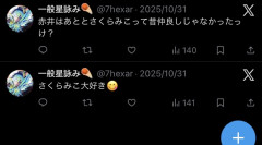 引用元: 1200: Vtuberまとめ (ワッチョイW 0bcd-CejK) 2026/01/07(水) 18:36:17.92 ID:Qe1jpxf5 星詠みも激怒 一般星詠み☄ @7hexar (2026/01/07 17:57:11) 謝れて偉いみたいな事言ってる35P湧いてるけど一言も謝ってないよね…wそもそも当事者間の問題だから謝る必要ないっちゃないけど。もっと早くこの件に言及してればここまで燃えることも無かっただろうに。 35Pの断裂は続くし離れたファンは戻ってこないけどまぁ頑張ってくれや。バッバイ~ 謝れて偉いみたいな事言ってる35P湧いてるけど一言も謝ってないよね…wそもそも当事者間の問題だから謝る必要ないっちゃないけど。もっと早くこの件に言及してればここまで燃えることも無かっただろうに。35Pの断裂は続くし離れたファンは戻ってこないけどまぁ頑張ってくれや。バッバイ~ — 一般星詠み☄ (@7hexar) January 7, 2026 [引用元] さくらみこ🌸1st Album『flower rhapsody』発売中 @sakuramiko35 (2026/01/07 17:43:04) 日頃から応援してくださり 本当にありがとうございます。 ======================== 競馬配信内の発言について、 配慮が十分でなかった部分がありご心配をおかけしてしまったことを重く受け止めています。 日頃から応援してくださり本当にありがとうございます。 ======================== 競馬配信内の発言について、配慮が十分でなかった部分がありご心配をおかけしてしまったことを重く受け止めています。… — さくらみこ🌸1st Album『flower rhapsody』発売中 (@sakuramiko35) January 7, 2026 1248: Vtuberまとめ (ワッチョイW 955f-gywO) 2026/01/07(水) 18:37:27.73 ID:3SsWFK8G >>1200 しょうもないカスのX引っ張って楽しいのか? 1251: Vtuberまとめ (ワッチョイ eae5-MCom) 2026/01/07(水) 18:37:31.04 ID:SsQw0VHS >>1200 事実としてアンチに扇動されて自我を持つファンが発生するんだから 早めに対処しとくのが正解ってわかっちゃったな 1253: Vtuberまとめ (ワッチョイ 8adb-xsxN) 2026/01/07(水) 18:37:32.25 ID:Fkh634wo >>1200 星詠みなのにみこめっと嫌ってそう 1262: Vtuberまとめ (ワッチョイ f865-uizw) 2026/01/07(水) 18:38:02.64 ID:LNP12Z3g >>1200 こいつただのみこアンやんけ めっちゃわかりやすくみこアン 1281: Vtuberまとめ (ワッチョイW 39f9-w1uO) 2026/01/07(水) 18:38:47.48 ID:xAX3D41z >>1200 はいはい自演乙 1323: Vtuberまとめ (ワッチョイ d55b-y8Pp) 2026/01/07(水) 18:40:08.51 ID:eHWfE4ZM >>1200 延々みこ叩きしててネームドホロアンチリポストしてて立派なホロファンだね 1339: Vtuberまとめ (ワッチョイW c065-6B3p) 2026/01/07(水) 18:40:40.78 ID:3qF2qZ8s >>1200 今回の件よりずっと前からただのみこアンだろ 1348: Vtuberまとめ (ワッチョイW f865-ebMq) 2026/01/07(水) 18:41:08.09 ID:MMDzOpMS >>1200 自演乙 1753: Vtuberまとめ (ワッチョイ d19d-CdcC) 2026/01/07(水) 18:48:11.81 ID:v9T70X7a >>1200 典型的な成りすまし垢だけどこれをファンとして扱うのが今のX…