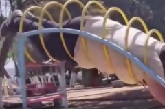 【悲報】デブ、公園の遊具から抜け出せず死亡