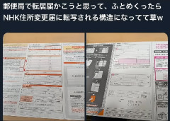 【画像あり】郵便局の転居届を書くと、自動的にNHKの住所変更届に転写される模様