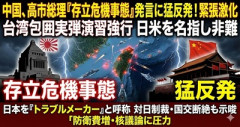 1: 名無し 2026/01/09(金) 11:28:45.32 ID:8xLq9WvP0 高市早苗総理の台湾有事「存立危機事態」発言以来、緊迫の度合いを増している日中関係。昨年末の12月30日から2日間、中国人民解放軍は台湾包囲実弾軍事演習を実施した。この演習について、中国の王毅外相は「台湾独立勢力」と日米両国など「外部干渉勢力」への厳重な警告と名指しで非難するなど、その軍事的矛先が日本にも向けられていることは明らかだ。 中国は他にも、首相補佐官による核武装発言に加え、日本の防衛費が12年連続で過去最大になることに敏感に反応し、「日本は国際社会のトラブルメーカー」であると牽制。国連による「対日制裁」の可能性にも言及するなど、両国が今後、事実上の断交状態に陥ることも懸念される。 デイリー新潮(Yahoo!ニュース) ■要約 ・高市総理が台湾有事を「存立危機事態」と位置づけたことに中国が強く反発している。 ・2025年末、中国軍は台湾を包囲する形での実弾演習を強行し、日米を名指しで非難した。 ・中国側は日本の防衛予算増や核武装議論を捉え、日本を「トラブルメーカー」と呼称。 ・中国は国連による対日制裁や、将来的な国交断絶の可能性すら示唆し、圧力を強めている。 ■解説 自国の核弾頭を急速に増やし、実際に台湾を包囲して実弾演習を行っている国が、日本の正当な防衛議論を(トラブルメーカー)と呼ぶのは、あまりに身勝手な論理と言わざるを得ない。高市総理が(存立危機事態)に言及したのは、まさにこうした中国側の露骨な軍事的野心に対する現実的な危機感の表れであり、日本の独立を守るための当然の姿勢である。 中国側が対日制裁や断交までちらつかせるのは、それだけ高市政権の安保方針が彼らにとっての急所を突いている証左でもある。国際社会のルールを無視して力による現状変更を試みているのはどちらなのか、客観的に見れば一目瞭然だろう。こうした恫喝に屈することなく、日米同盟を軸とした抑止力の構築を着実に進めることこそが、真の平和に繋がる道である。 日本としては、中国のプロパガンダに惑わされることなく、毅然とした態度で主権を守り抜く必要がある。特に核弾頭の増強という具体的な脅威が示されている以上、日本が核抑止を含めた議論を深めることは、平和を守るための不可欠なプロセスだ。高市政権には、不当な外部圧力に左右されず、国民の生命を守り抜く強い意志を期待したい。 【兵庫】ナイジェリア人(45)らによる組織的ロマンス詐欺か「あなたに会いに行きたい」「東京までのヘリコプター代が必要」 容疑で男再逮捕、男※が2... レーダー照射の件で日本に論破されまくった中国、「事前に予測された通りの行動を取り始めたぞ」と日本側を大いに動揺させてしまう 海外「世界よ、これが日本だ!」 日本の普通の年越し、衝撃的すぎて海外で4000万回再生を突破…