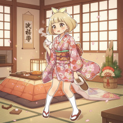 お絵描きAIくん、あわてんぼうの寝正月の可愛い女の子も作れる