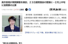 1 : 高市首相(自民党総裁)は9日、23日召集が予定される通常国会の冒頭で衆院を解散する検討に入った。衆院選は2月上中旬に実施される公算が大きい。首相は参院で少数与党が続いており、政策実現の推進力を得る必要があると判断したとみられる。 政府関係者が明らかにした。衆院選の日程は「1月27日公示―2月8日投開票」「2月3日公示―15日投開票」の案が浮上している。 首相は「強い経済」「責任ある積極財政」を主張しており、自身の経済政策について国民の信任を得たい考えだ。 続きは↓ 7 : 解散! 15 : いいぞ 面白くなってきた…