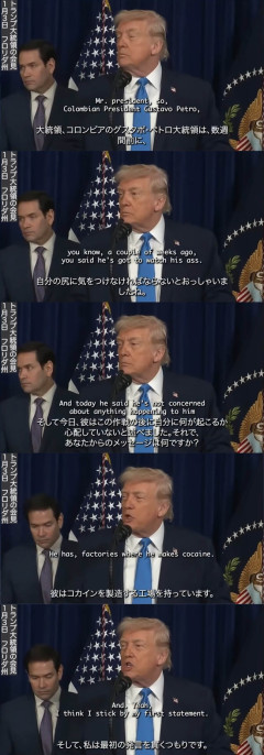 トランプ親分「我が国に麻薬を持ち込んだら次はコロンビアだ」