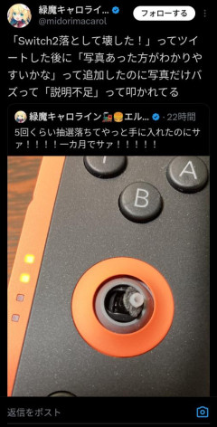 【画像】Switch2が壊れたVtuberさん、Xで袋叩きされてしまう