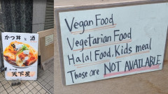 スレッド「この日本のカツ丼店は明らかにヴィーガン、ベジタリアン、イスラム教徒向けのメニューがあるか聞いてくる外国人客にうんざりしている」より。引用:X(海外の反応)1万国アノニマスさん この日本のカツ丼店は明らかにヴィーガン、ベジタリアン、イスラム教徒向けのメニューがあるか聞いてくる外国人客にうんざりしている(ちなみにお子様メニューも無い)日本語の看板にはカツ丼と酒と書かれている2万国アノニマスさん凄いな、ストレートな物言いで大好き豚肉と酒か、日本人と自分は好みが合うみたいだ3万国アノニマスさん カツは俺の大好物だよ…