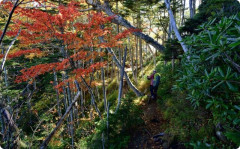 609: 底名無し沼さん 2016/09/17(土) 16:29:25.63 ID:cjX6DfEM4~5年前の晩秋の御前山大ブナ尾根サス沢山を過ぎて湖畔からの道が合流するあたりふと顔をあげるとハイキング姿の婆さんが降りてくるまだ朝早いのに?御前の避難小屋にでも泊まってたか髪と顔が紫色がかっていて変だという気はしたが…