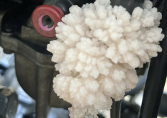 氷点下の寒さの中、一晩放っておいたバイクに異変が。変わり果てたガソリンの姿に「初めて見た…」と、どよめきが起こっている。 朝晩は凍えるような日が続く今日この頃。春の暖かさが恋しいばかりである。 以前X上では、極寒の中で放置されたバイクから現れた「驚きの物体」に、注目が集まっていたのをご存知だろうか。 ■一見普通のバイク、よく見ると奇妙な物が… 今回注目したいのは、Xユーザー・もりりんさんが投稿した1件のポスト。 「え、ガチでなにこれ」と綴られた投稿には、1台のバイクを収めた写真が添えられている。一見すると、何の変哲もない光景なのだが…。 よく見ると、バイク車体には「謎のカリフラワー」といった出立ちの、白い結晶体が付着していたのだった。 ■正体は「ガソリンの花」? こちらの光景は瞬く間に話題となり、Xユーザーからは「初めて見た」「何これ? キノコ?」「尿路結石に見えた」「何かの卵に見えた…」「よく分からないけど、ヤバそう」など、驚きの声が多数寄せられていた。 また、中には「ガソリンのお花ですね」「ガソリンです。私が以前乗ってたスクーターも、燃料漏れで同じ結晶ができました」といった具合に、同様の経験があると思しき人物からのコメントも確認できた。 ポスト投稿主・もりりんさんはことの経緯について、「ガソリン漏れを一晩放っておいたら、この状態になっていました。夜の寒さは氷点下になっていたと思います」と振り返っている。 しかし、ガソリンが凍る温度(凝固点)が「-100℃」である点を考慮すると、日本国内で「ガソリンが凍ってしまう」という状況は非常に考えづらい。 そこで今回は、ガソリン、およびバイクの専門機関らに詳しい話を聞いてみることに…。…
