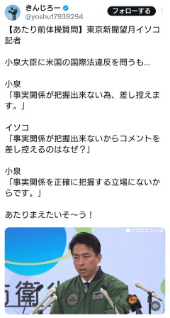 東京新聞記者「事実関係が把握出来ないからコメントを差し控えるのはなぜでしょう」小泉防衛大臣「事実関係を把握できないからです」