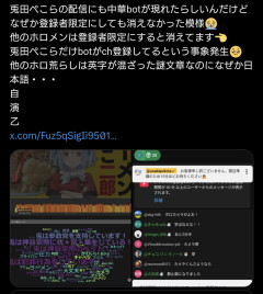 引用元: 65: Vtuberまとめ2026/01/11(日) 01:01:00.11 またやらせバレてます・・・ 兎田ぺこらの配信にも中華botが現れたらしいんだけどなぜか登録者限定にしても消えなかった模様😭他のホロメンは登録者限定にすると消えてます👈兎田ぺこらだけbotがch登録してるという事象発生🥺他のホロ荒らしは英字が混ざった謎文章なのになぜか日本語・・・ 自演乙 pic.twitter.com/h2VOb53SKg — まんまる (@Fuz5qSigIi95019) January 10, 2026 75: Vtuberまとめ2026/01/11(日) 01:01:54.93 >>65 王(ワン)の気配を感じる 80: Vtuberまとめ2026/01/11(日) 01:02:10.38 >>65 スクショとか付けろよ 91: Vtuberまとめ2026/01/11(日) 01:03:06.87 >>65 これって中国人がぺこらの登録してるってこと?w 101: Vtuberまとめ2026/01/11(日) 01:04:23.88 >>65 荒らしがきてるのに便乗してやってる連中居そうだな 106: Vtuberまとめ2026/01/11(日) 01:04:48.76 >>65 どうぞ…
