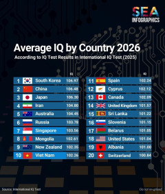 韓国ネットの反応 世界の知能指数(IQ)を調査する最新のレポートが発表され、その結果が韓国のネット上で大きな注目を集めています。2026年1月10日に共有されたインフォグラフィック(International IQ Test 2025の結果に基づく)によると、韓国は平均IQ 106.97を記録し、世界1位に輝きました。このランキングは、2025年に実施された国際的なIQテストの結果を集計したもので、2位の中国(106.48)や3位の日本(106.30)を僅差で抑える形となりました。今回のランキングで特に注目すべきは、上位3カ国(韓国、中国、日本)がいずれも東アジア勢であり、106台という極めて高い数値を記録している点です。これに続く4位にはイラン、5位にはオーストラリア、6位にはロシアがランクインしており、アメリカは18位(101.04)に留まっています。韓国がシンガポールや日本といった強力なライバルを退けて首位に立ったというこのニュースは、瞬く間に拡散されました。教育熱心な文化やITインフラの普及など、さまざまな要因が推測されます。この記事へのコメントはこちらからお願いします。…