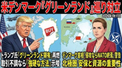 1: 名無し 2026/01/11(日) 14:42:15.34 ID:TrmP6REn0 ドナルド・トランプ米大統領は9日、デンマーク自治領グリーンランドの領有に改めて意欲を示し、デンマークの主権を軽視するとともに武力行使による奪取を改めて示唆した。トランプ氏は、北極圏でロシアと中国が軍事活動を活発化させていることを踏まえ、鉱物資源が豊富なグリーンランドの領有は米国の国家安全保障にとって極めて重要だと主張した。 AFPBB News ■要約 ・トランプ氏がグリーンランド領有への意欲を改めて示し、取引が不調なら「強硬な方法」をとる可能性を示唆した。 ・北極圏におけるロシアや中国の軍事活動を背景に、安全保障と鉱物資源の重要性を強調した。 ・デンマークのフレデリクセン首相は、侵攻があればNATOや戦後安保体制の終焉を招くと警告している。 ・トランプ氏はデンマークの歴史的領有権を否定し、米国の利益を最優先する姿勢を鮮明にした。 ■解説 トランプ大統領のグリーンランド領有への意欲は、一見過激に見えるが、北極圏の安全保障と資源確保という冷徹なリアリズムに基づいている。ロシアや中国が北極圏での影響力を強める中、米国がこの戦略的要衝を確固たるものにする意義は大きい。 高市政権が日本独自の資源開発を推進しているのと同様に、国家の自立には資源と防衛拠点の確保が不可欠だという認識は共通している。同盟国との摩擦は懸念されるが、現状の変更を試みる中露に対抗するためには、こうした強力なリーダーシップと果敢なディールが必要とされる局面もあるだろう。 衆院選、703人が出馬準備 自民・維新64選挙区で競合―野党も調整進まず 韓国人「元々、日本には王がいなかったんですが、韓国人がわざわざ日本に渡って王になってあげたんです」 日本企業の「中国離れ」加速か…拠点の開設予定わずか0・4%!…