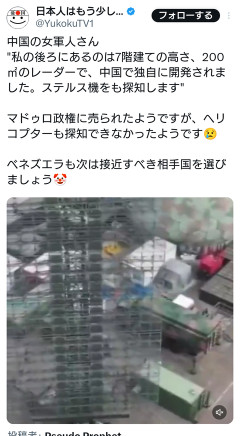 1: 名無しさん@ 2026/01/11(日) 10:00:58.30 ID:QRbJyn2j0● BE:662593167-2BP(2000) 41: 名無しさん@ 2026/01/11(日) 10:33:08.54 ID:wBOYz1w90 >>1 田舎で干物干したりするのでこんなん見た事あるわ 3: 名無しさん@ 2026/01/11(日) 10:01:43.58 ID:zKf2n3/l0 結局なんだったのこれ、風車? 74: 名無しさん@ 2026/01/11(日) 13:39:21.60 ID:s0gNXzbN0 >>3 あんなもん飾りです! ベネズエラの人にはそれがわからんのですよ 5: 名無しさん@ 2026/01/11(日) 10:04:05.72 ID:jRB6vBPt0 その女軍人さんはどうなったの? そこが1番重要だと思うんです! 6: 名無しさん@ 2026/01/11(日) 10:04:06.75 ID:OZKN6+DN0 ハリボテ国家だし 9: 名無しさん@ 2026/01/11(日) 10:04:41.22 ID:Ty6hwuhZ0 中国「次は大丈夫だから!次は!!」 29: 名無しさん@ 2026/01/11(日) 10:25:04.49 ID:0xVxilR80 いつものハリボテ 31: 名無しさん@ 2026/01/11(日) 10:26:56.59 ID:D8xIzvYs0 言い訳がめちゃくちゃで草 33: 名無しさん@ 2026/01/11(日) 10:27:16.39 ID:/gy5JZ2h0 電子戦で真っ先に潰されたんじゃないの 36: 名無しさん@ 2026/01/11(日) 10:29:51.66 ID:wBOYz1w90 洗濯物干すのに再利用出来るだろ 57: 名無しさん@ 2026/01/11(日) 11:16:34.31 ID:r6HF9sOL0 爆発しないだけ優秀 61: 名無しさん@ 2026/01/11(日) 11:29:43.59 ID:WtcIeqUo0 レーダー本体が台座に対して水平取れてない時点でポンコツだとわかる 71: 名無しさん@ 2026/01/11(日) 13:27:23.25 ID:/xHeya8u0 >>61 斜めってて草 77: 名無しさん@ 2026/01/11(日) 13:49:20.09 ID:xmcbxw9Z0 レーダー型風車な ただの玩具 81: 名無しさん@ 2026/01/11(日) 14:16:32.91 ID:lZ+Kynvx0 そりゃ中国製だからね 引用元…